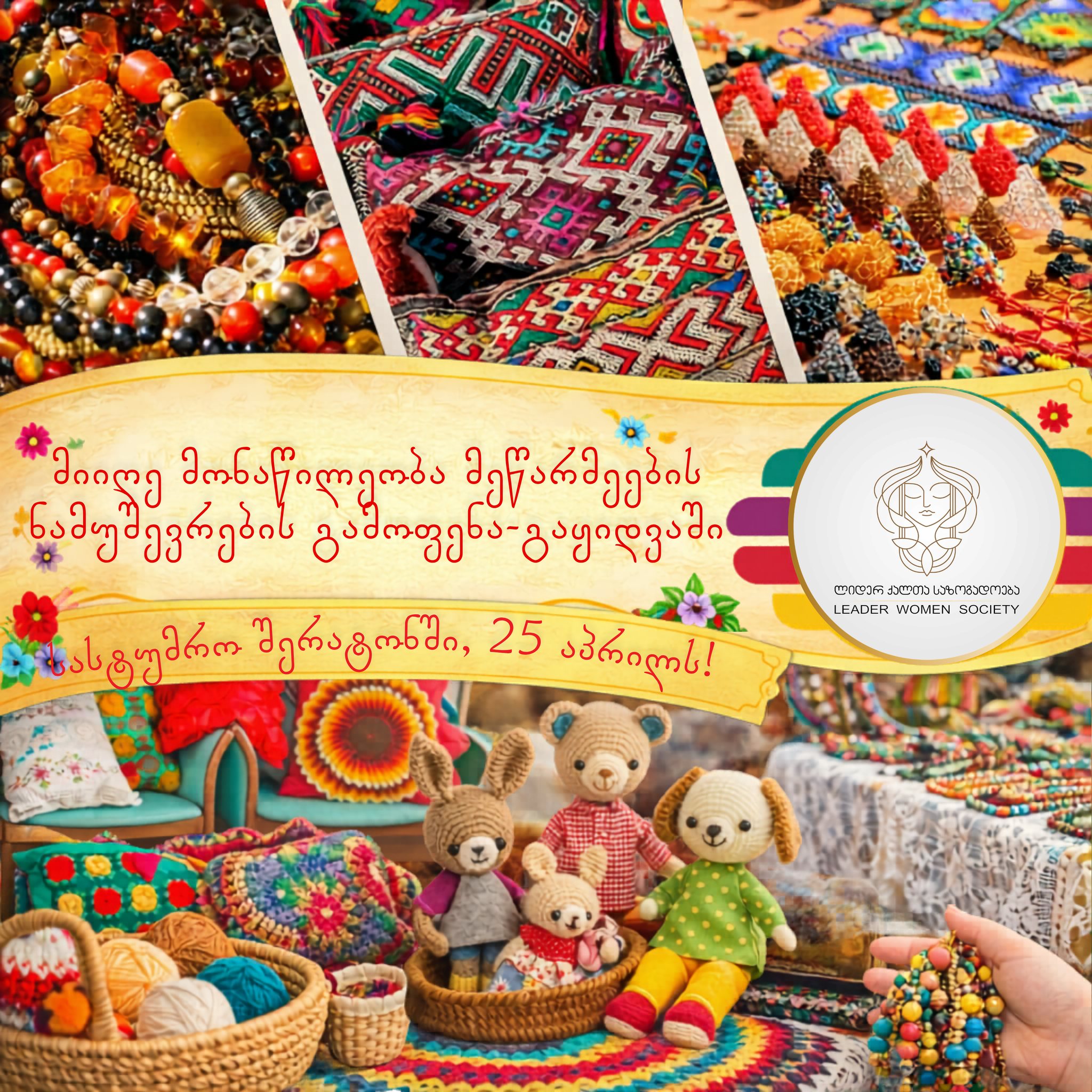 🌟 მიიღე მონაწილეობა ნამუშევრების გამოფენა/გაყიდვაში 25 აპრილს, სასტუმრო შერატონში! გამოფინე შენი ნამუშევრები, გააცანი ისინი ფართო საზოგადოებას, შეიძინე ახალი მომხმარებლები და გააძლიერე შენი ბრენდის ცნობადობა.