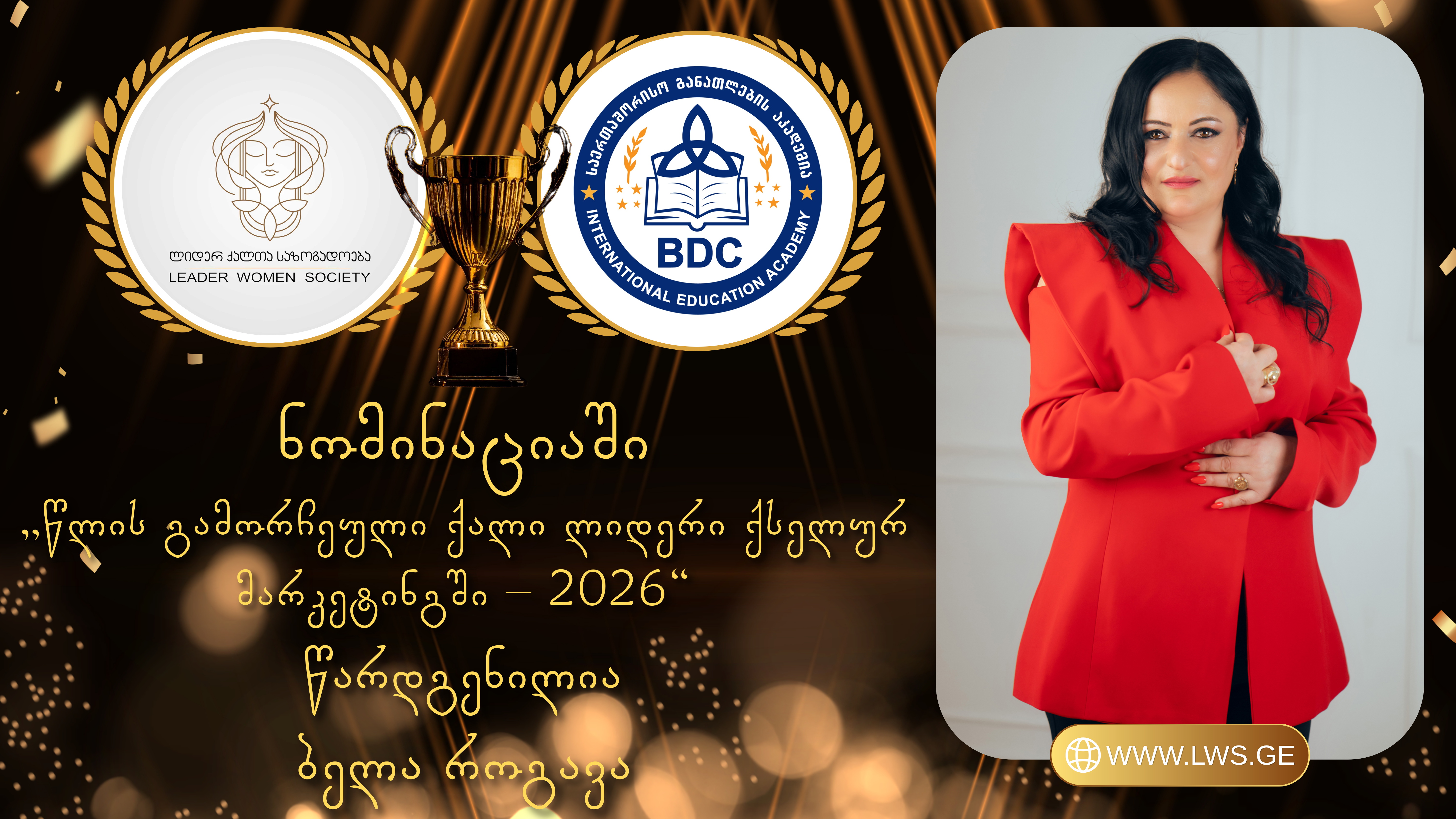 ნომინაციაში „წლის გამორჩეული ქალი ლიდერი ქსელურ მარკეტინგში – 2026“ წარდგენილია ბელა როგავა