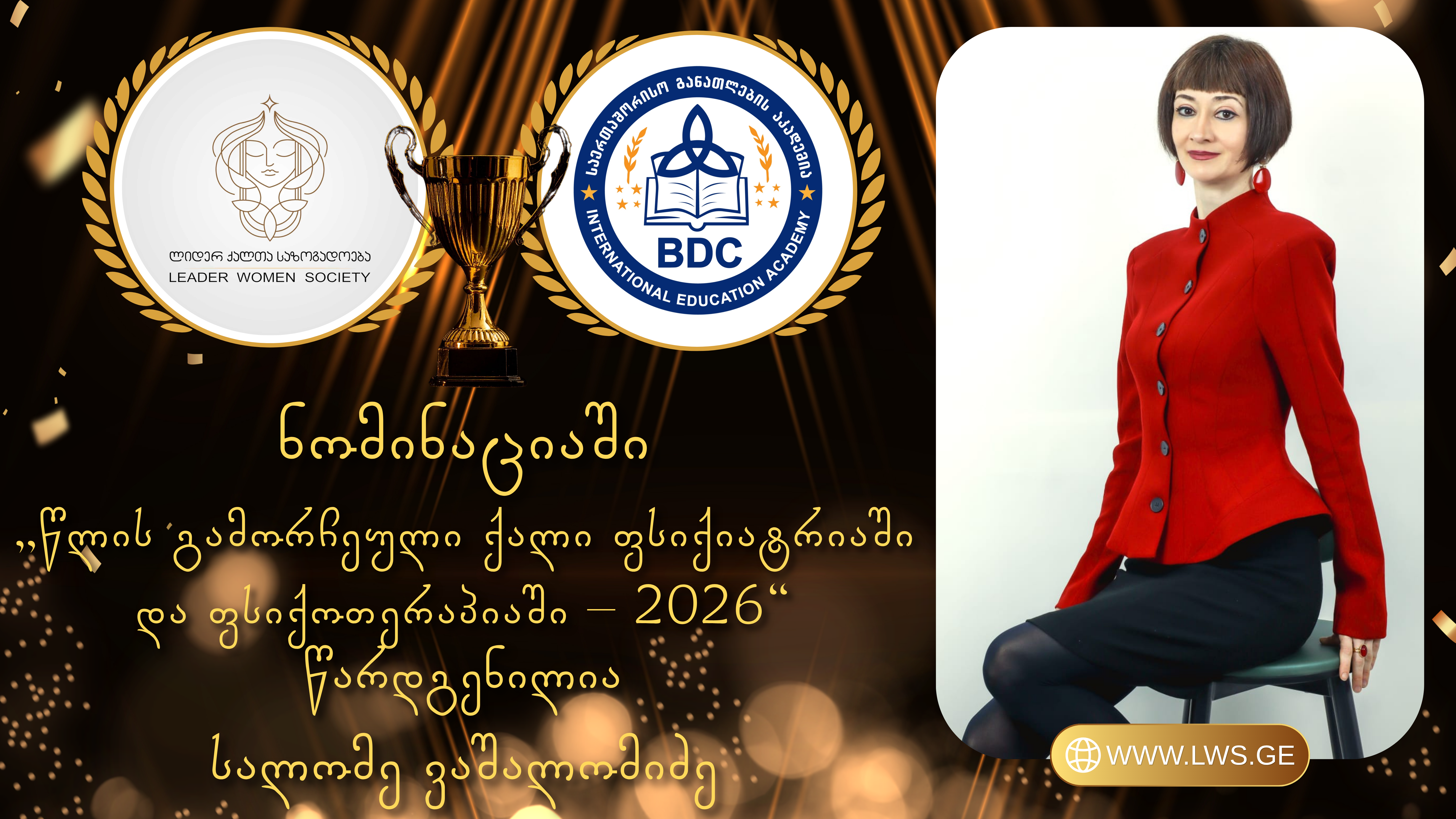 ნომინაციაში „წლის გამორჩეული ქალი ფსიქიატრიაში და ფსიქოთერაპიაში – 2026“ წარდგენილია სალომე ვაშალომიძე