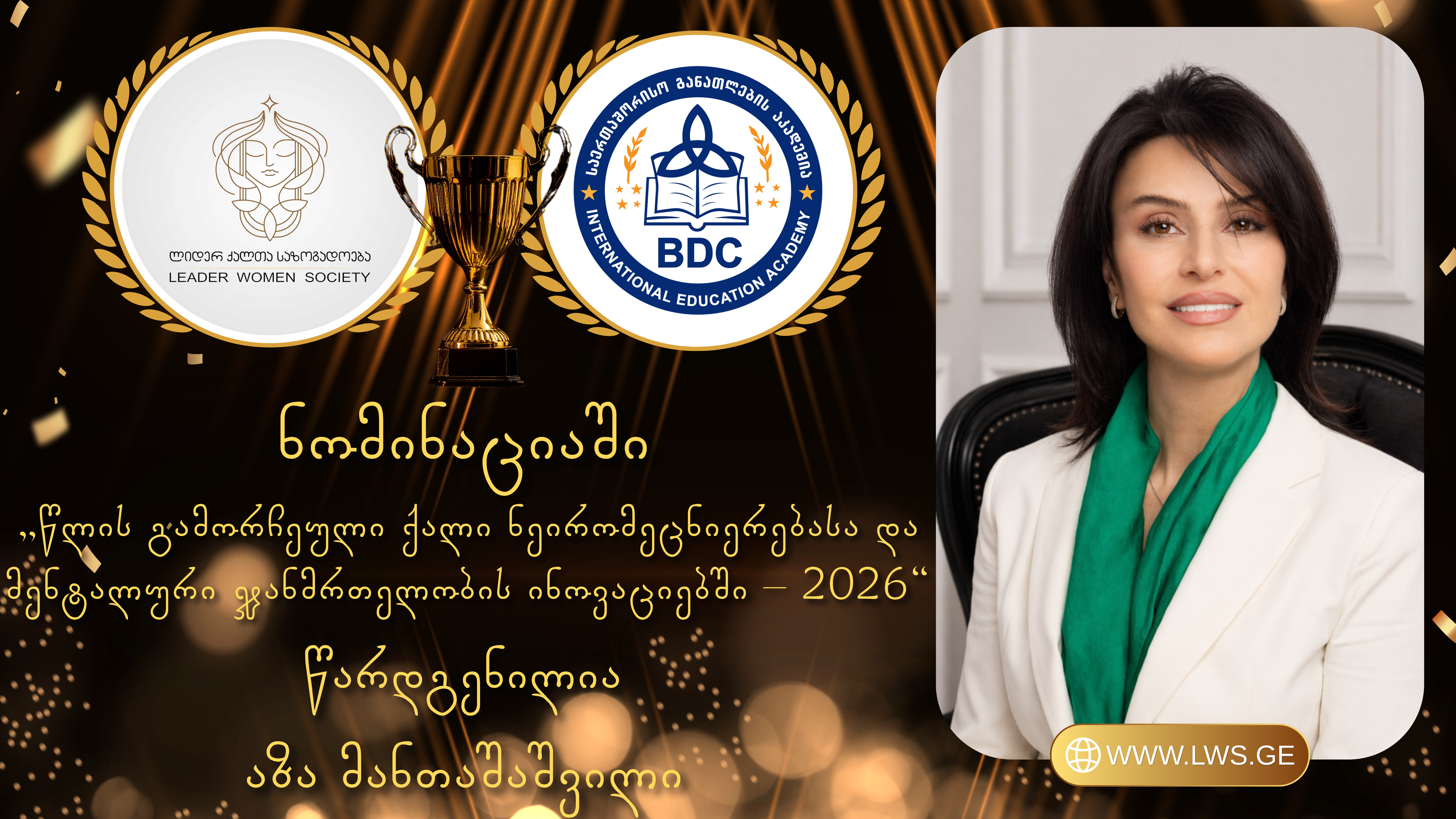 ნომინაციაში „წლის გამორჩეული ქალი ნეირომეცნიერებასა და მენტალური ჯანმრთელობის ინოვაციებში – 2026“ წარდგენილია აზა მანთაშაშვილი