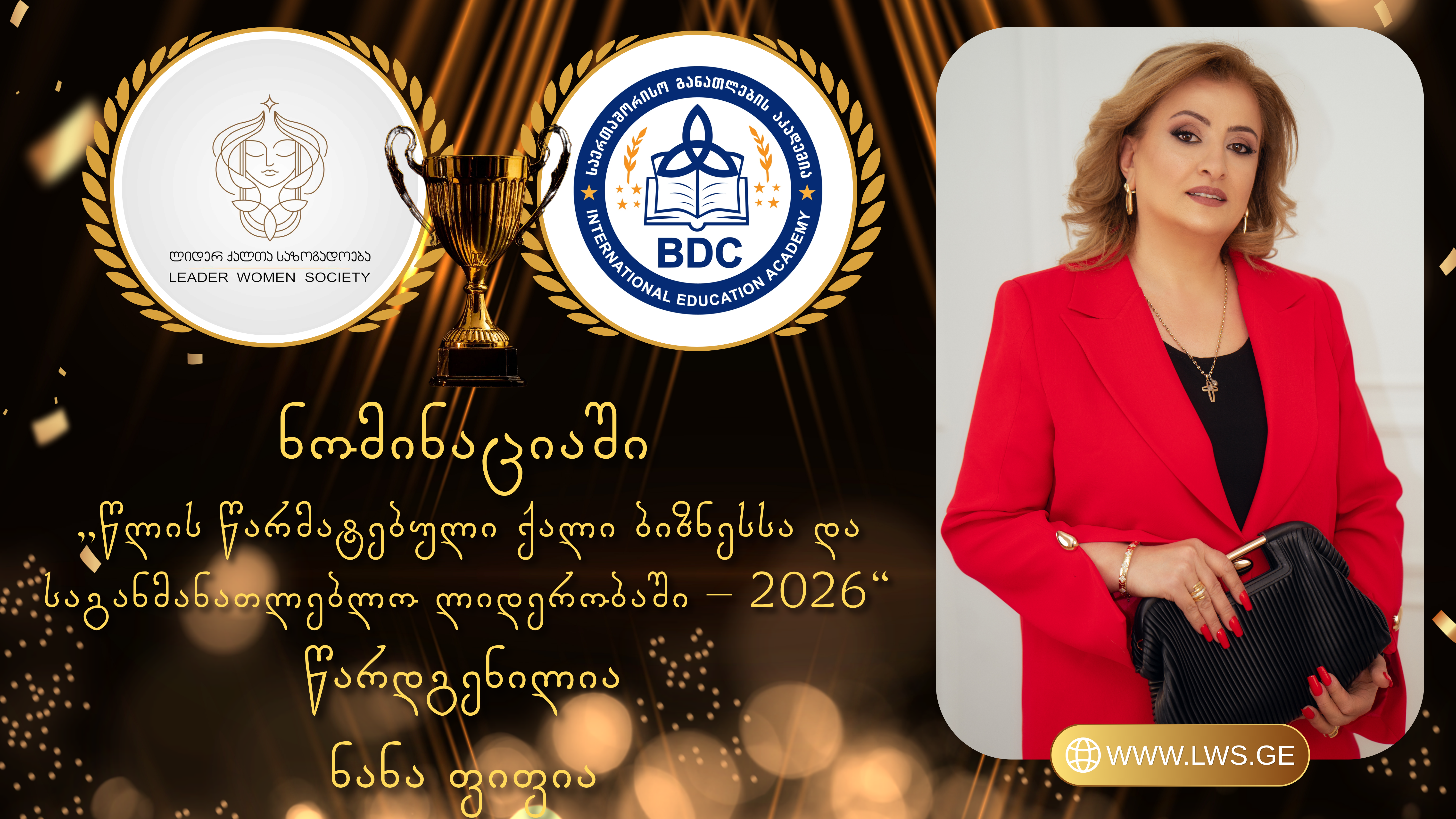 ნომინაციაში „წლის წარმატებული ქალი ბიზნესსა და საგანმანათლებლო ლიდერობაში – 2026“ წარდგენილია ნანა ფიფია
