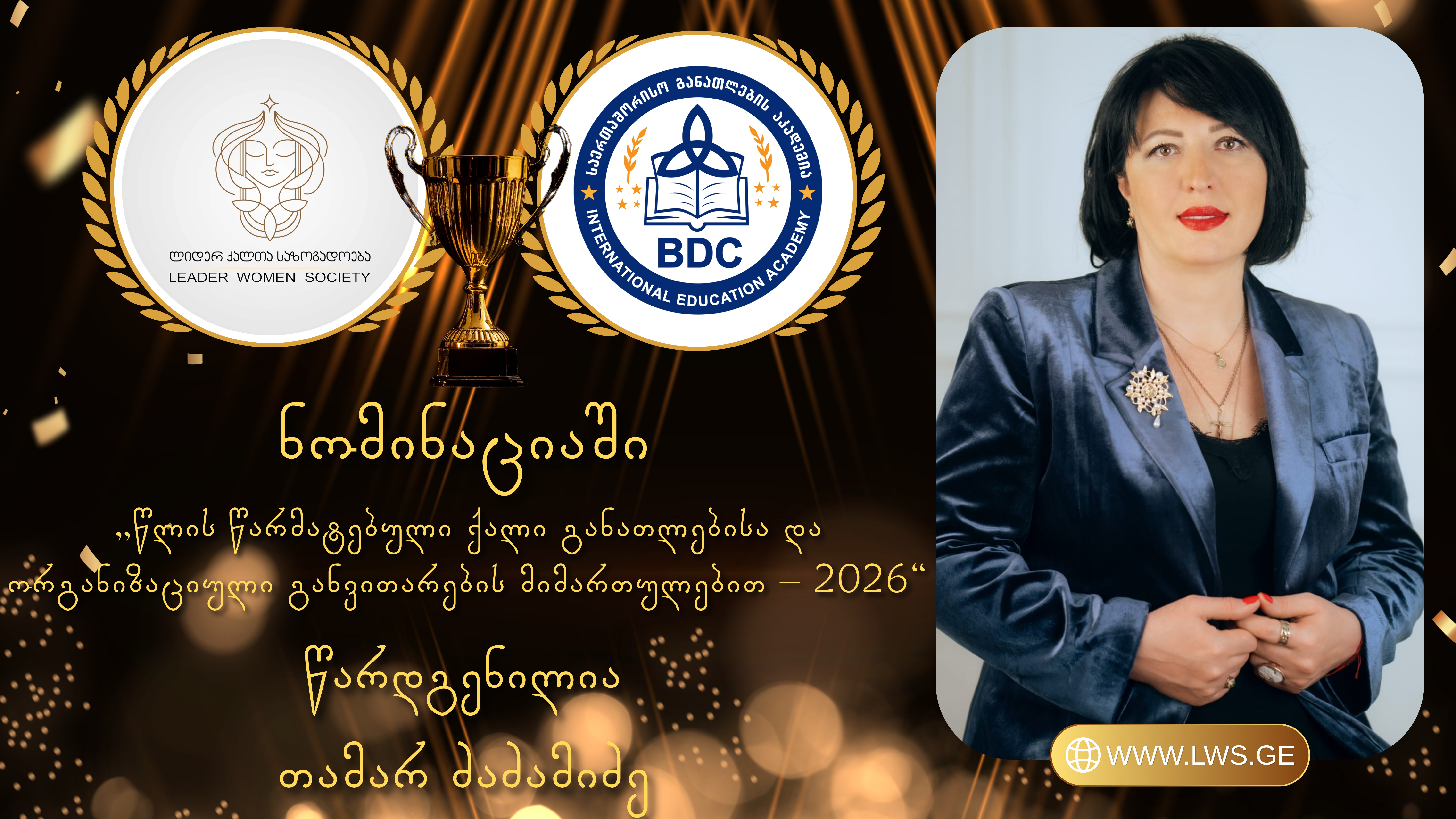 ნომინაციაში „წლის წარმატებული ქალი განათლებისა და ორგანიზაციული განვითარების მიმართულებით – 2026“ წარდგენილია თამარ ძაძამიძე