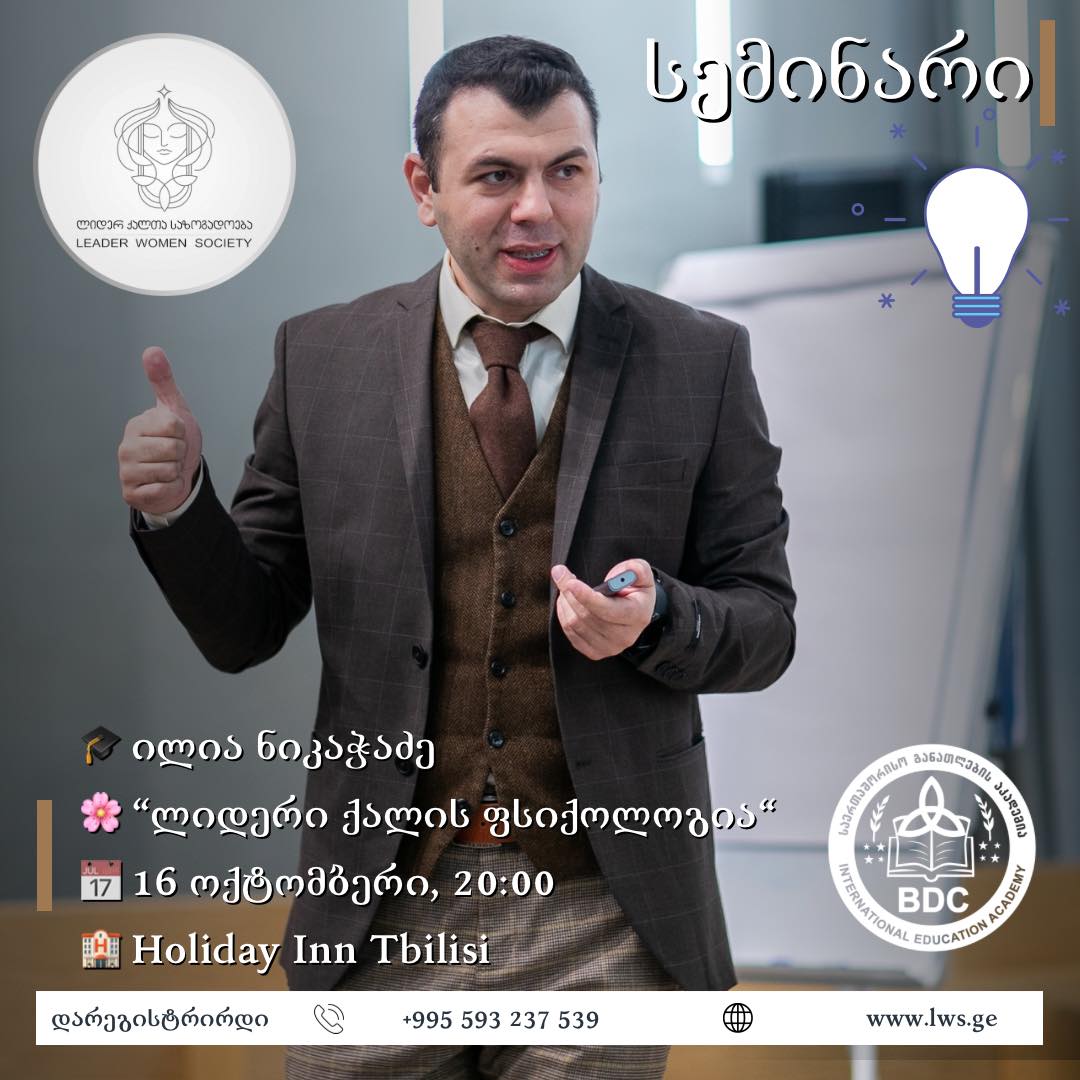 „ლიდერ ქალთა საზოგადოება“ გიწვევთ ფსიქოლოგ ილია ნიკაჭაძის ინსპირაციულ სემინარზე, თემაზე, რომელიც ყველა თანამედროვე ქალს ეხება.